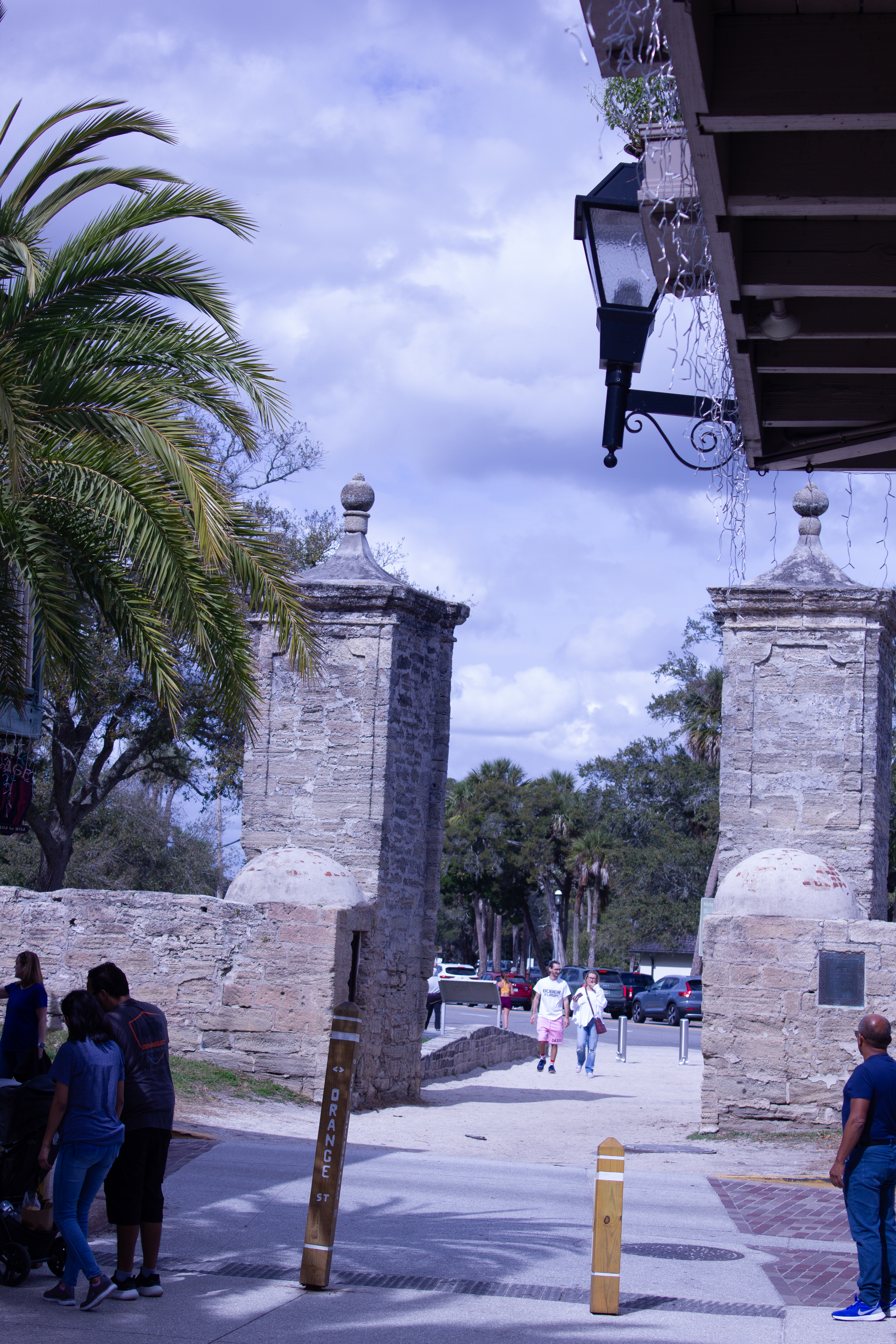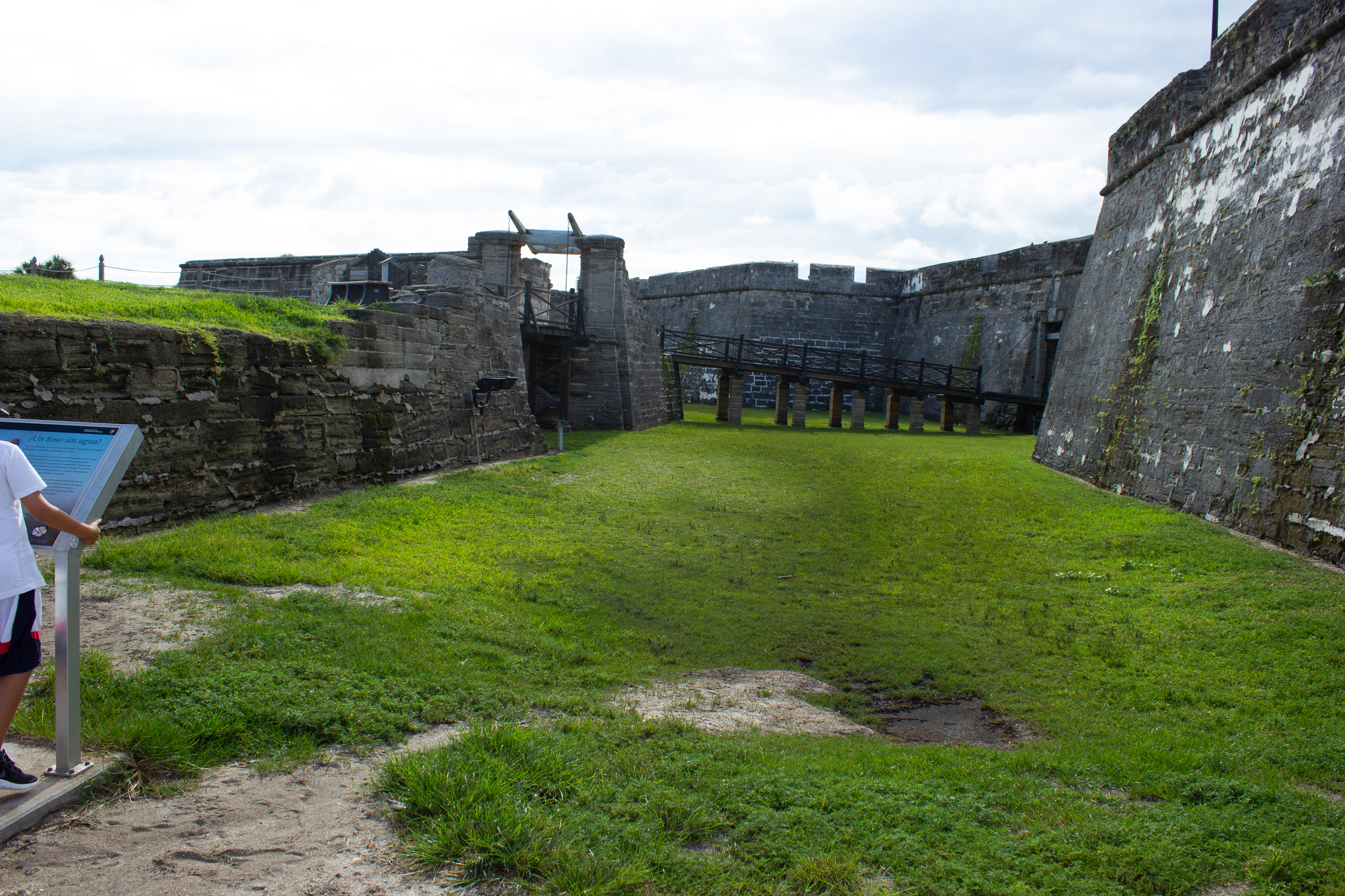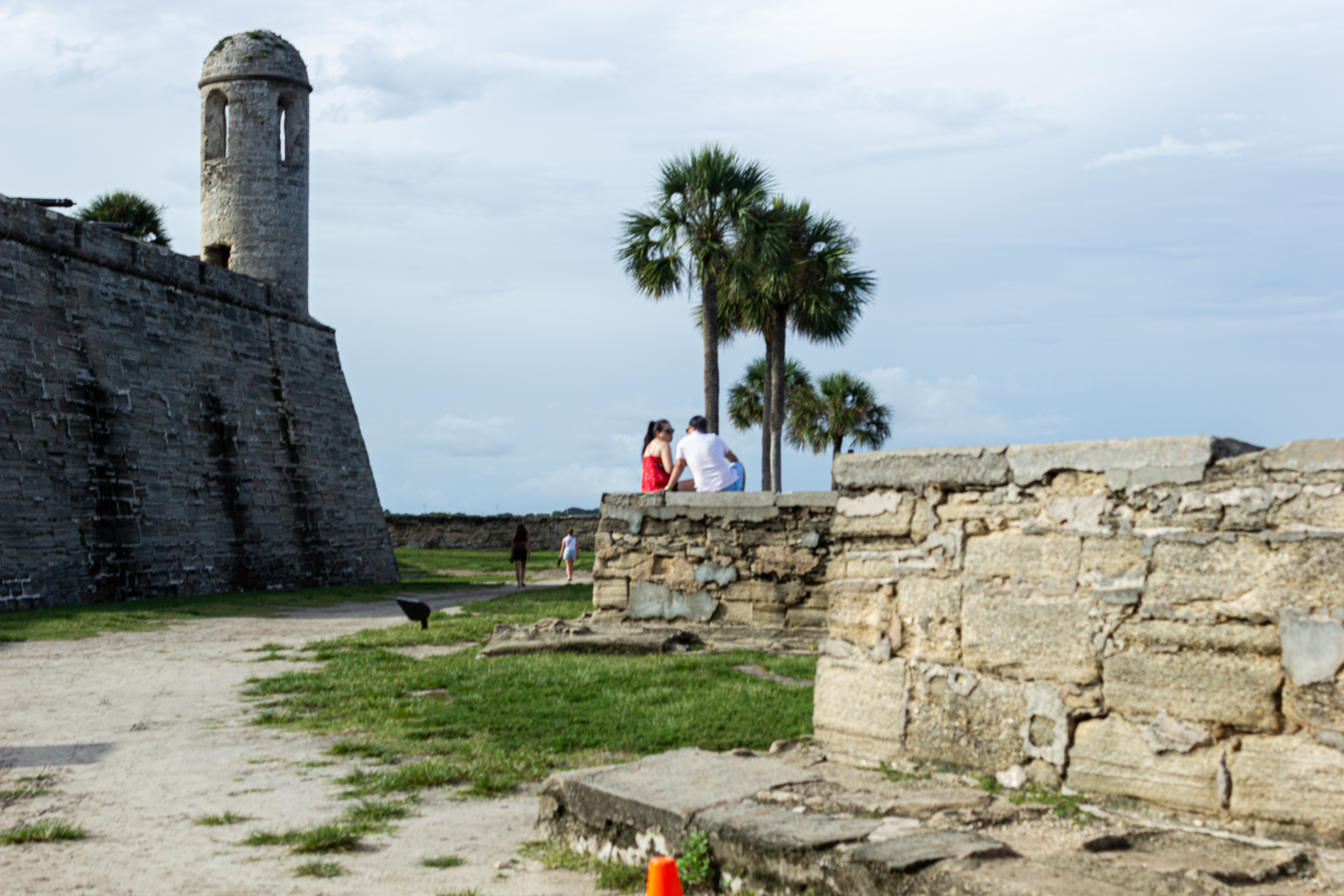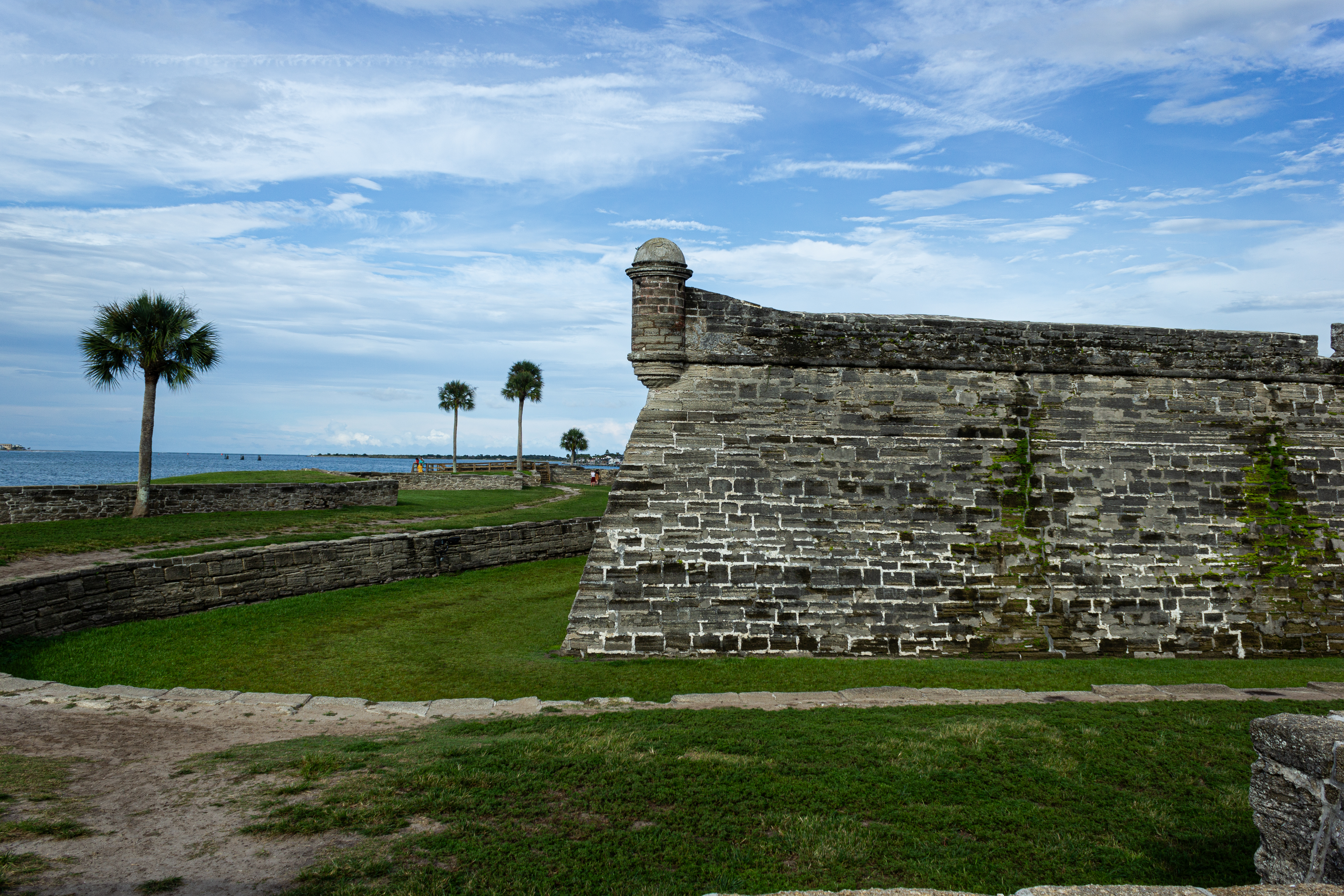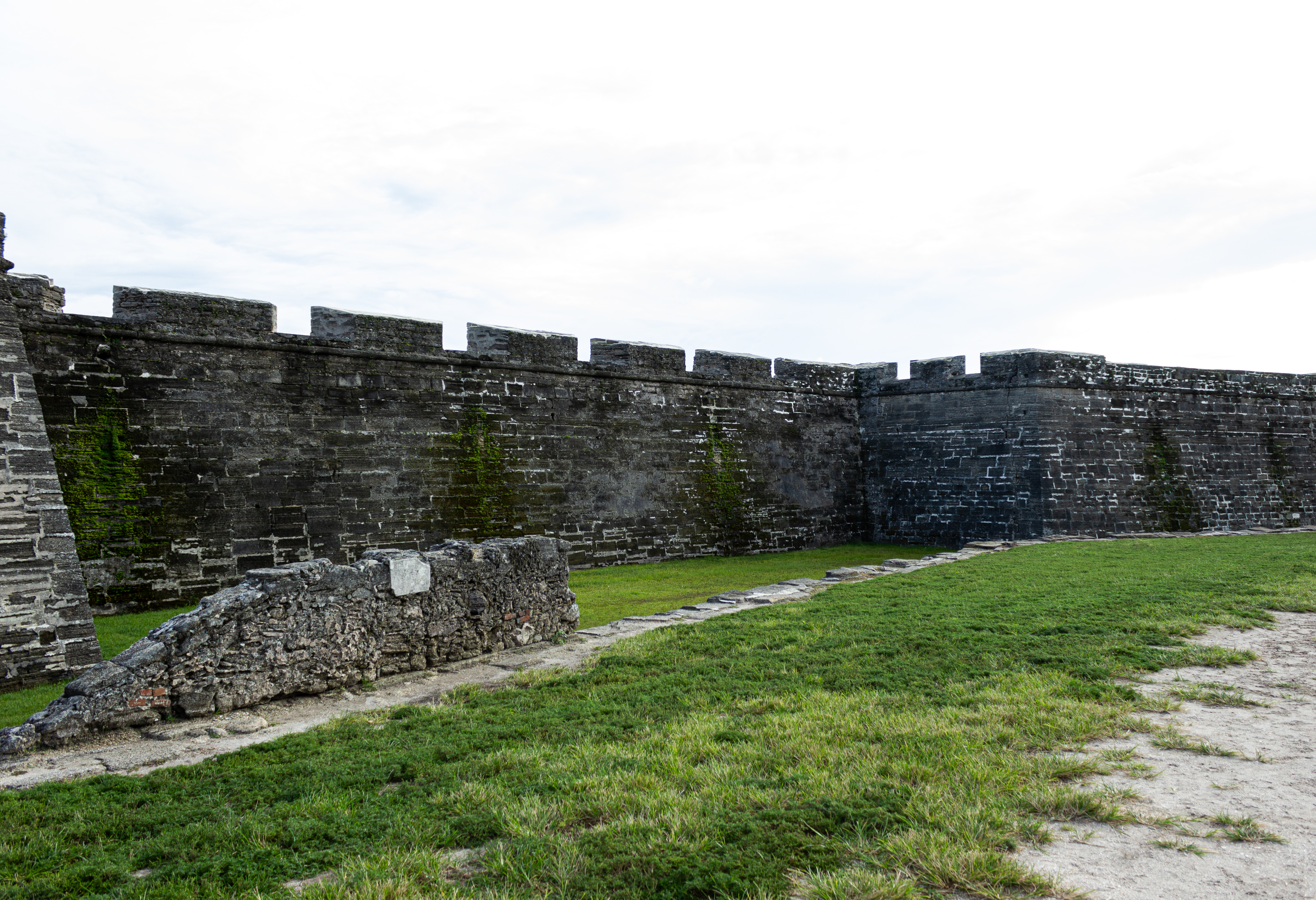 A lot of people call it the fort in St. Augustine, built between 1672-1695, and wow. You can tour the inside, and it’s cool if you get the opportunity to do this and see all the history inside. You can walk around the outside at almost any time, and it’s impressive. Just knowing it was built by hand and coquina (a natural concrete from the ocean made of shells) amazes me. If you walk around the outside towards St. George St., you will see a wall made out of logs. Make sure you go past them.